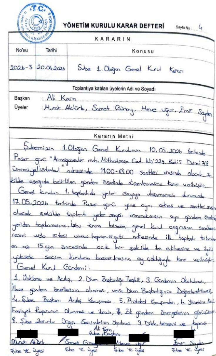 Sendikamız Hep-Sen Sevgi Oktay Şubesi 1. Olağan Genel Kurulu, Şube Yönetim Kurulu kararı doğrultusunda aşağıda belirtilen tarih, saat ve adreste gerçekleştirilecektir: