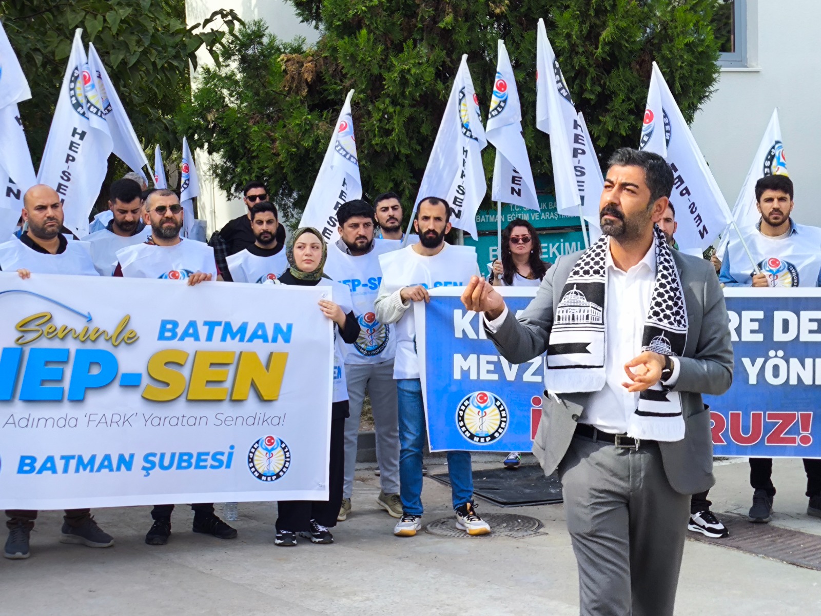 Batman Eğitim ve Araştırma Hastanesi önünde, HEP-SEN Genel Başkanı Sn. Yunus Şimşek öncülüğünde bir basın açıklaması ve eylem gerçekleştirildi.