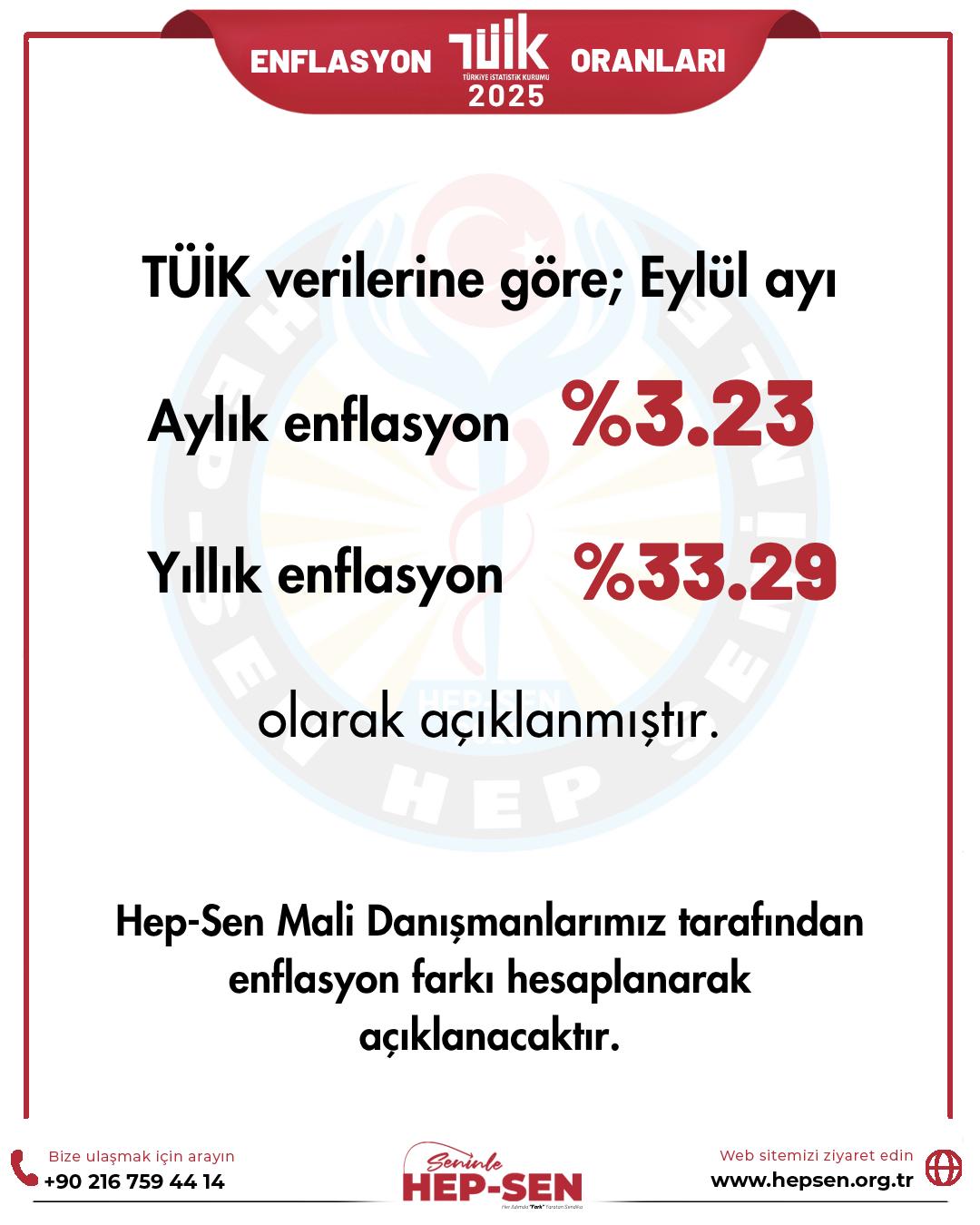 TÜİK verilerine göre Eylül 2025 enflasyonu %3,23 olarak gerçekleşmiştir. 2025 Eylül ayı enflasyonu İTO’ya göre %3,19 ENAG’a göre %3,79 olarak açıklanmıştır. Bu farklılık, enflasyon hesaplama yöntemlerindeki yaklaşım farkını onlarca kez gözler önüne sermiştir, sermeye de devam ederek memuru enflasyona ezdirmiştir. Özellikle kamu kurumu ve STK’ ların (TÜİK, İTO ve ENAG) verileri arasındaki belirgin fark, kamuoyunda ciddi tartışmaları da beraberinde getirmektedir.